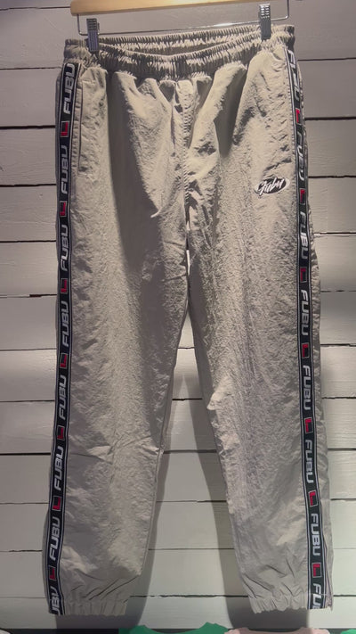 両サイドに施されたブランドロゴテープと左ももの刺繍ロゴがFUBUらしいデザイン。